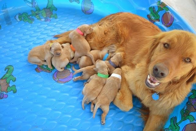Goldens have always been one of my favorite breeds and with Sam's career being animal-focused and his work days spent in and out of vet clinics, he couldn't wait to get one of his own! So he contacted Lish and had his name put down on their reservation list for a female pup to be bred in March and born in May! May 17th was the big day! As we were being updated via Lish Kennels Facebook page, we were worried that there were only going to be boy pups because there were four in a row before the girls decided to make an appearance! Can you tell how excited Sam was when the girls arrived?
